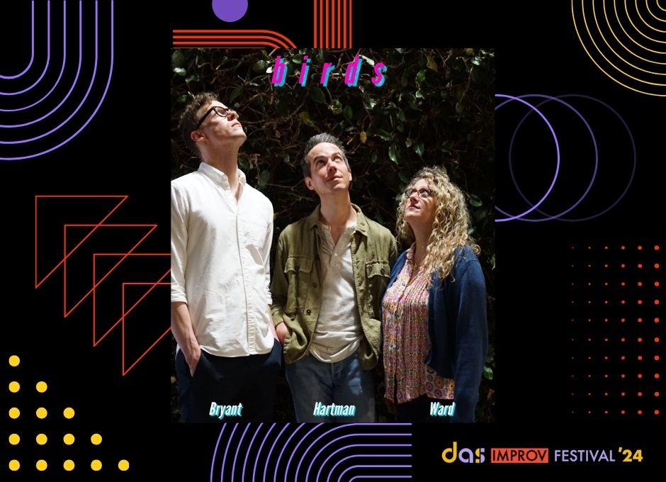 Comedy Cafe Berlin Roseggerstr 17, Berlinbirds is a narrative musical improv group starring Ross Bryant, John Hartman and Ashley Ward with Zach Marsh on keys.